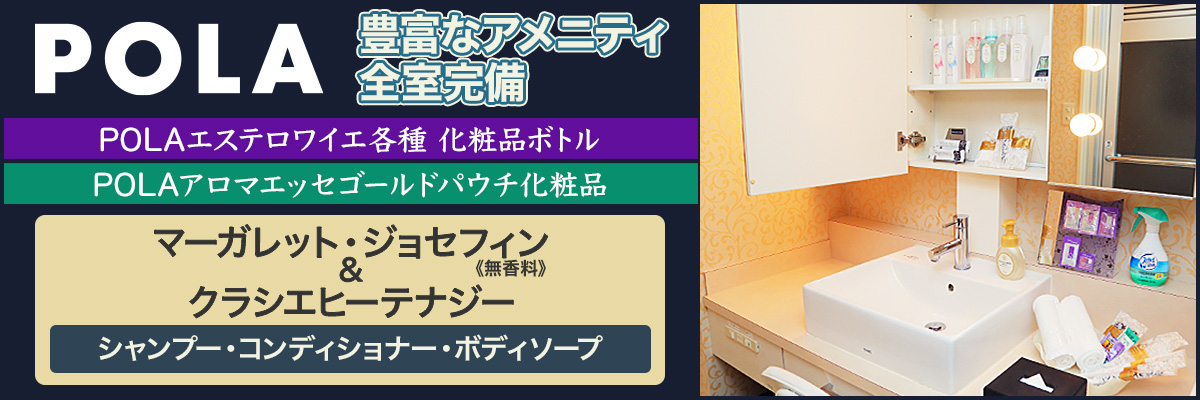 この度、当ホテルの各客室にPOLAシリーズから新しく「POLAエステロワイエ各種 化粧品ボトル」を導入致しました。